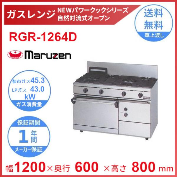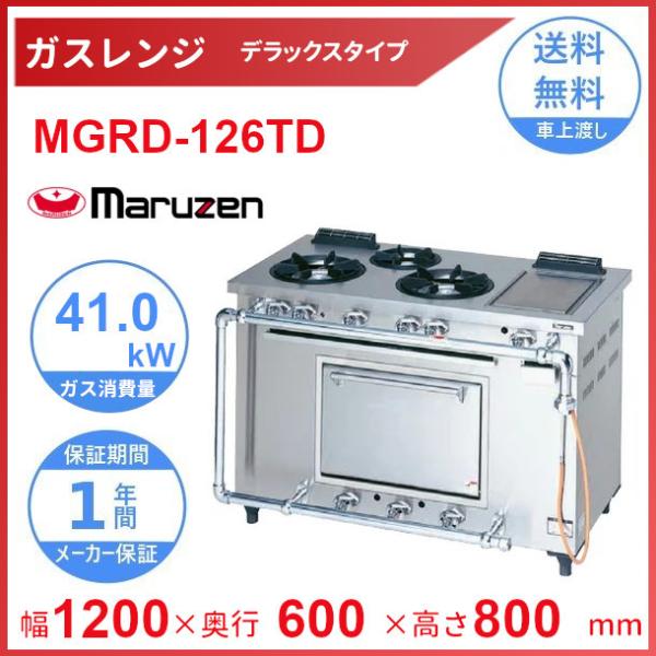 | MGRD-126D | 1,200 600 800 | 片面式 | φ175×2 φ125×2 オーブン上火×2 オーブン下火×1 | 1 | 470 470 320 | 44.0kW(37,800kcal/h)/44.0kW(3.15kg/h) | 25A | ¥264,000 | |