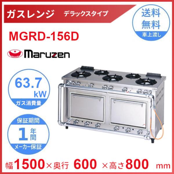 | MGRD-156D | 1,500 600 800 | 片面式 | φ175×3 φ125×2 オーブン上火×4 オーブン下火×2 | 2 | 470 470 320 | 63.7kW(54,800kcal/h)/63.7kW(4.57kg/h) | 32A | ¥391,000 | |