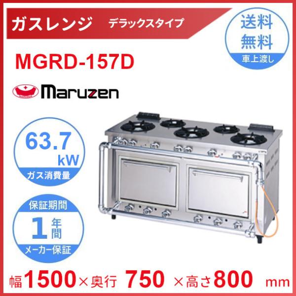 | MGRD-157D | 1,500 750 800 | 片面式 | φ175×3 φ125×2 オーブン上火×4 オーブン下火×2 | 2 | 470 470 320 | 63.7kW(54,800kcal/h)/63.7kW(4.57kg/h) | 32A | ¥416,000 | |