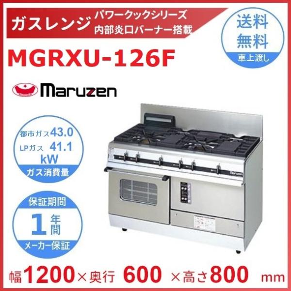 | MGRXU-126F | 1,200 600 800 200 | 420 300 340 | 片面式 | 小×2 大×2 オーブン×1 | 1 | 43.0kW(37,000kcal/h)/41.1kW(2.95kg/h) | 20A | 1φ100V | 74/84W | ¥598,000 |