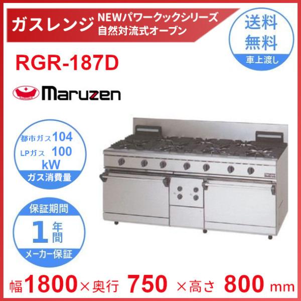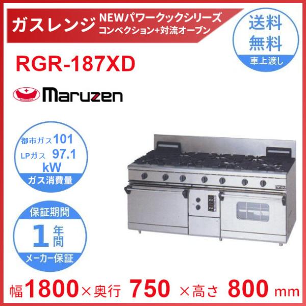 | RGR-1812WXD | 1,800 1,200 800 - | 565 400 320 | トップ 両面式 | φ190×8 | 2 | 150kW(129,000kcal/h)/145kW(10.4kg/h) | 25A×2 | 148W/168W | ¥1,580,000 |